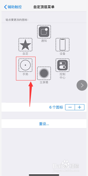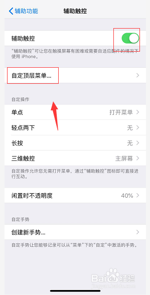进入辅助触控界面,点击自界说顶层菜单,如下图所示