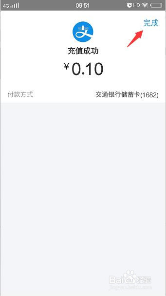 提醒充值当作功,点击完成按钮: