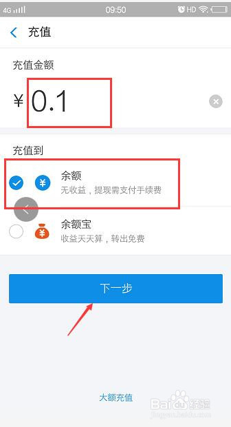 输入充值越,然后勾选【余额】,点击下一步: