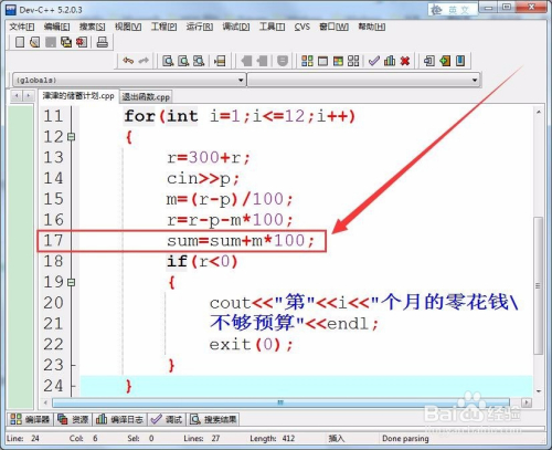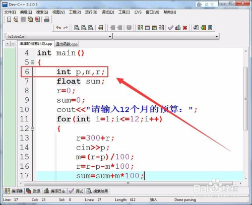 首先,界说三个整型变量,保留每个月的预算、每个月的储蓄系数和每个月的余额。