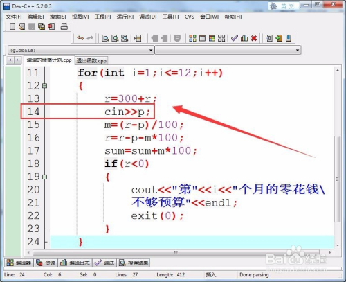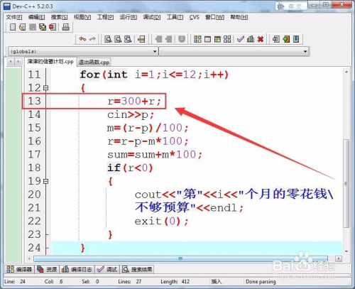 运行法式,输入每年12个月的预算,电脑就会判定哪个月会呈现零花钱不敷预算的环境,并输出月份,若是没有零花钱不敷用的环境,则输出年底储蓄获得的总金额。