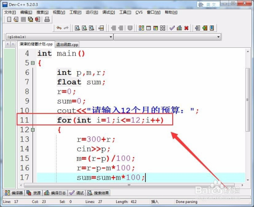 用for轮回计较12个月的储蓄打算,前提是i小于等于12。