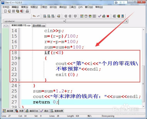 用if语句判定,若是余额小于0,申明零花钱不敷预算,输出不敷预算的月份,并退出法式。