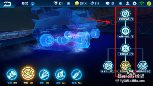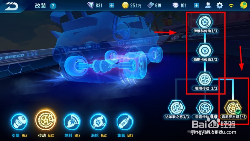 依旧是将“燃料/涡轮/集氮”3项改满,引擎选择“五菱引擎”改装分支