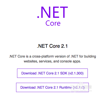 别离点击左边的两个 Download .NET Core 2.1 SDK 和 Download .NET Core 2.1 Runtime 下载它们,如下图所示: