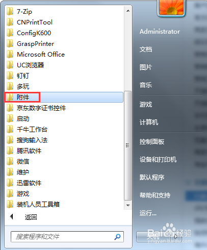 在附件选项下方找到计较器