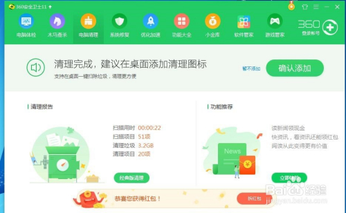垃圾清理完当作后,电脑会显示“清理完当作,已释放的几多的”,后点击“完当作”就可以啦。