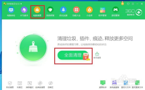 还可以点击上方的“电脑清理”,后再点击“周全清理”,电脑会主动选择一部门垃圾。