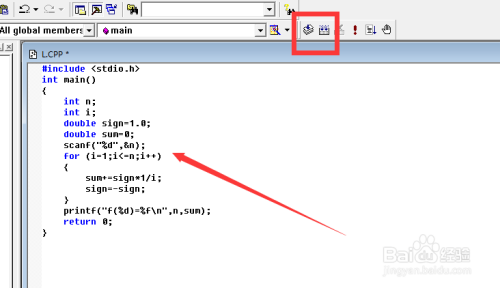 呈现源文件框时,可输入本身的法式,进行保留,并点击右上角的编译按钮进行编纂查抄是否法式有错误,