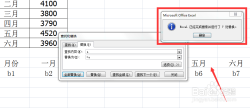 弹出窗口显示已替代,可以看到a列的内容都替代当作功了。