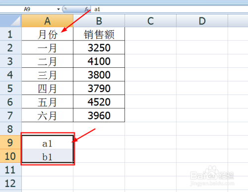例如我的【月份】是在a1,就输入a1,鄙人面输入【发卖额】的位置b1。然后选中输入内容的单位格,鼠标放到右下角,呈现【+】的时辰按住鼠标标的目的右拖动,快速填充。