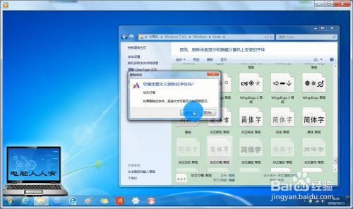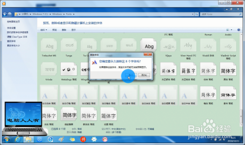 弹出是否永远删除这些字体的警告→是。
