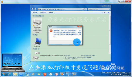 点击添加打印机才发现问题地点→打印办事未开(以前修复法式会检测获得办事未开启,再开启的)