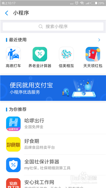 点击进入到小法式界面后,在顶部比来利用的下方就是我们利用过的小法式,而想要删除某个小法式就长按这个小法式。
