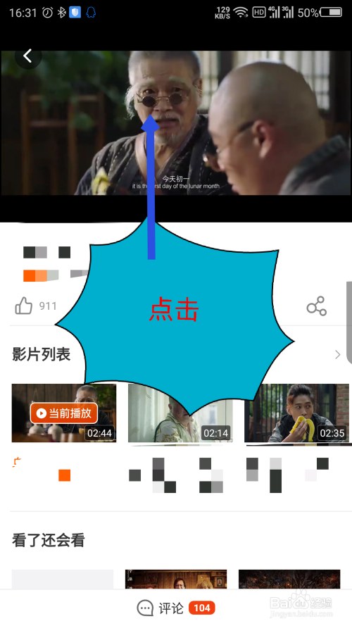 在打开的视频播放界面,点击一下正在播放的视频的画面。如图所示