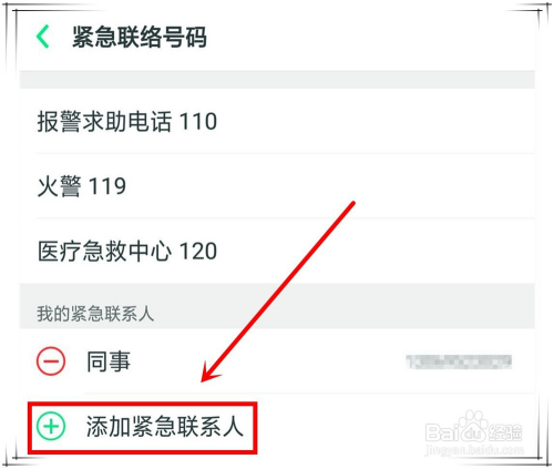 除了利用默认报警号码外,我们还可以自界说告急联系人号码,点击“添加告急联络号码”选项,在页面中选择“添加告急联系人”。