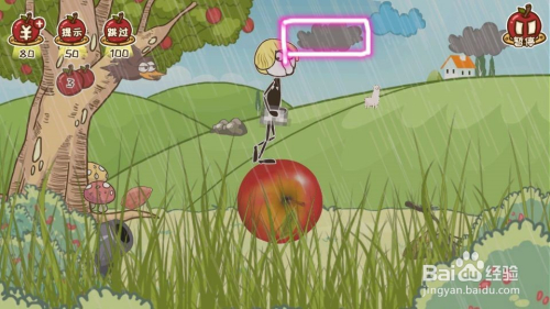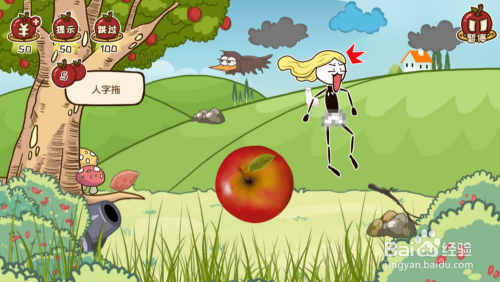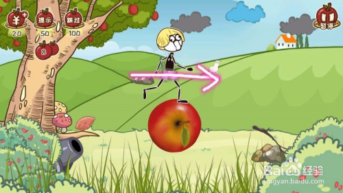 7、点击左下的炮台,炮弹打坏苹果,平安落地