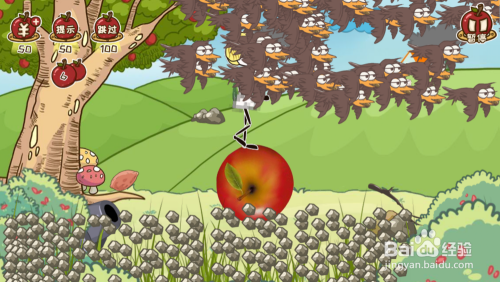6、点击乌鸦,会来一群乌鸦扔下石子使苹果停下