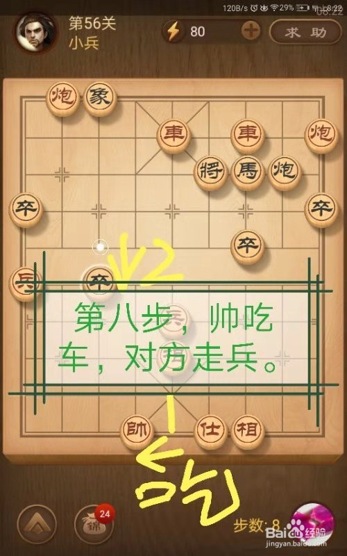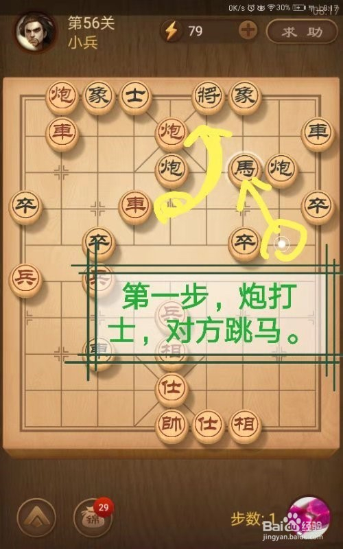 打开手机游戏天天象棋,选择闯关,选择56关,棋局如图。