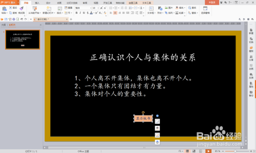 插入两个文本框,别离输入板书内容,包罗课题和常识点。之后设置字号、颜色等,最后“组合”在一路。