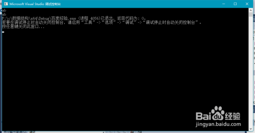 确认输入没有错误后,点击Windows当地调试器进行调试,稍等半晌,在号令行窗口中输入ab和空格进行测试,发现直接退出了输入
