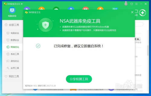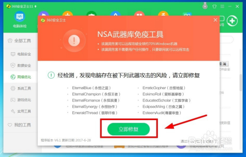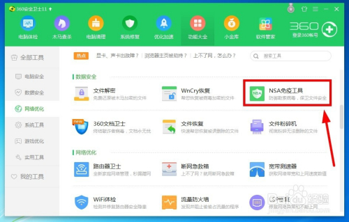 在功能年夜全中,找到“NSA免疫东西”,然后点击“当即修复”