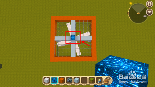在门轴位置放1个电石能量块,如许4面墙就会围着门轴动弹了。