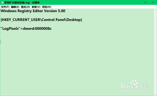 按照上述建造【菜单栏高度.reg】注册表文件的方式,建造一个【字体扩年夜百分比值.reg】注册表文件添加到注册表中。