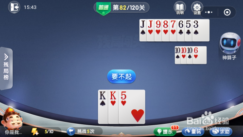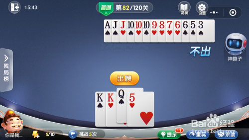 妙算子打出一对J,我打出一对K,接着打出一张5就过关了。