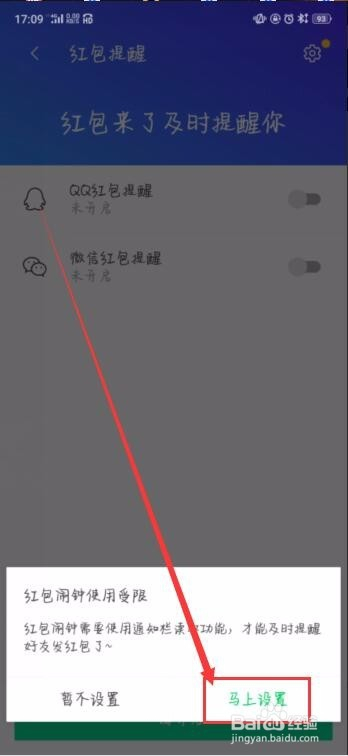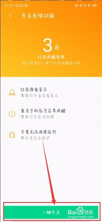 因为手机管家功能搜下,红包提醒当作功率低。点击界面中的红包提醒受限按钮,开启红包弹窗显示、自启权限和后台庇护权限。就可以提高红包提醒当作功率啦!如图所示。