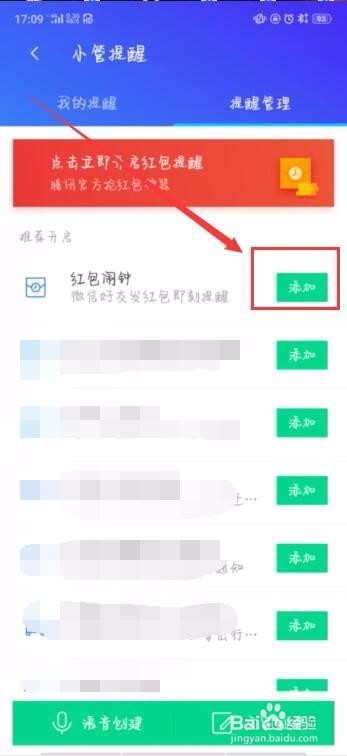 然后在界面中找到红包闹钟,点击后面的添加按钮,如图所示。