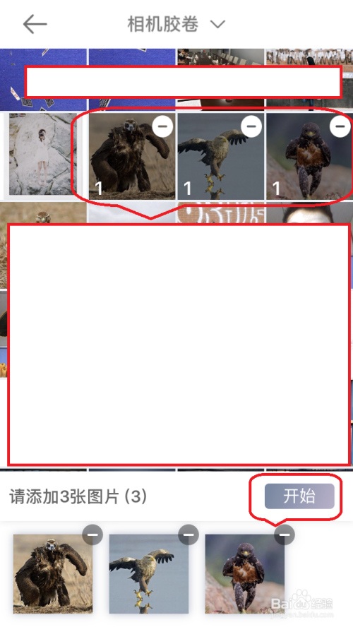 点击下载完当作的“3D气概”模板,从手机相册按照提醒拔取添加照片,然后再点击“起头”。