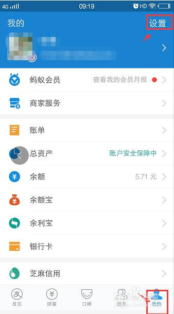 点击 我的 菜单,然后点击右上角的 设置 按钮。