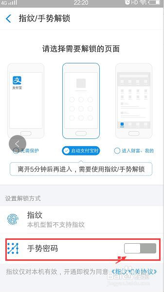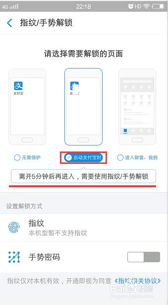 选中中心的图标:启动付出宝时,下面有此处密码的利用场景,按照本身的环境设置: