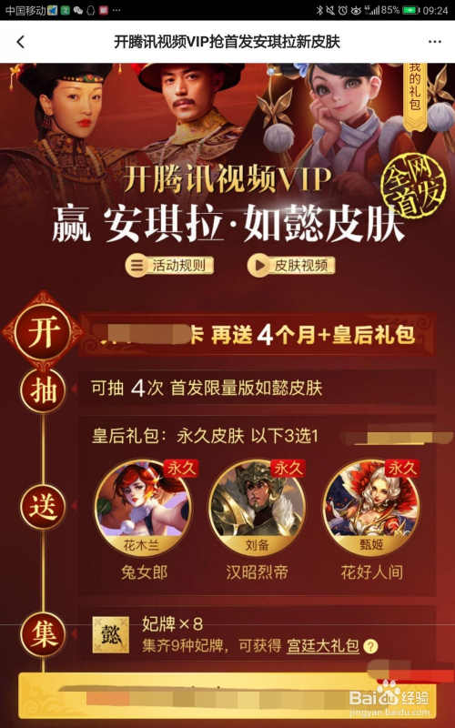 如许,就进入到了“开腾讯视频VIP抢安琪拉新皮肤”页面,标的目的下翻,你就可以按照自身需要开通会员了。