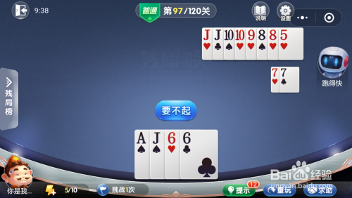 跑得快打出一张5,我打出一张A,接着打出一张J一对6就过关了。