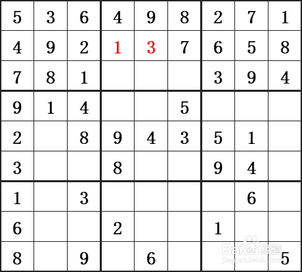 第二横行只剩下1和3,假设按照图示进行填写。