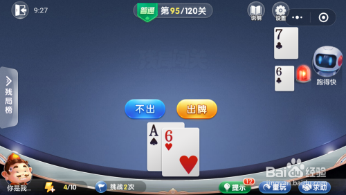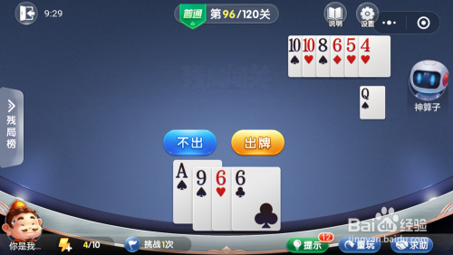 我打出一对6,妙算子打出一对10,接着打出一张4,然后我打出一张9就过关了。