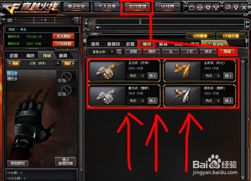 采办完当作后,点击顶上的【小我仓库】-【脚色】-【饰品】,就能看到方才采办的戒指了,点击戒指就能装扮到脚色上,左边有图预览。