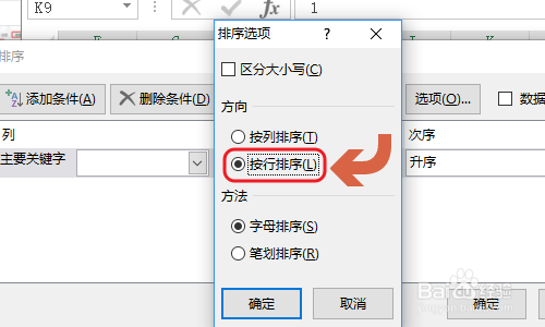 在排序选项对话框勾选“按行排序”,然后在本家儿要关头字下方选择最后的行数,点击确定返回到表格,这时所有列之间就被插入了一个空行,如图三;