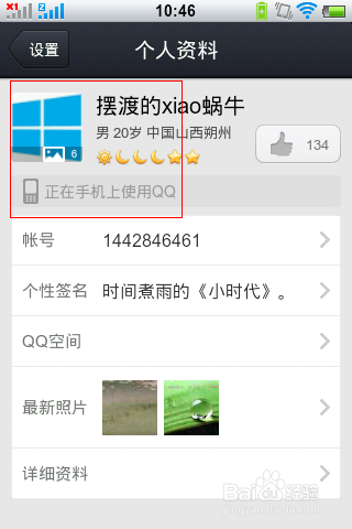 然后接下来,我们就会进入本身的小我资料的设置页面,这里我们点击“小我资料”这个选项,然后我们会看到本身的资料卡中已经呈现了我们上传的图片了哦。