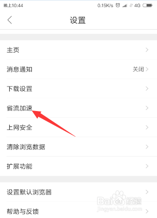 点开下【设置】之后,我们接着来点按开这个【省流加快】,如图。