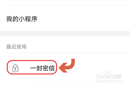 然后在小法式首界面点击右上角的放年夜镜logo,然后在弹出的搜索框输入“一封密信”,图二就是该小法式的图标;