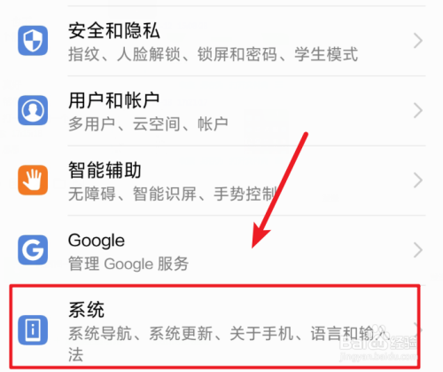 进入设置后,我们下滑mate7手机的设置选项,然后选择下方【系统】选项进入。