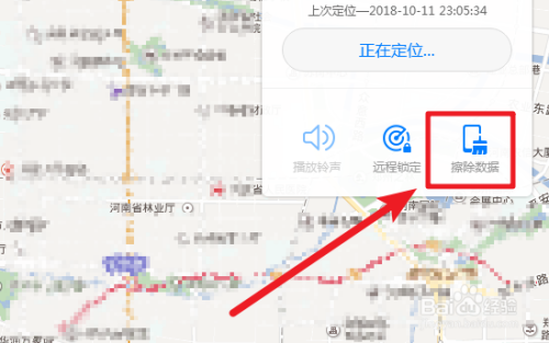 查找完毕后,会主动定位出华为mate7手机的位置,我们点击页面中的“擦除数据”。