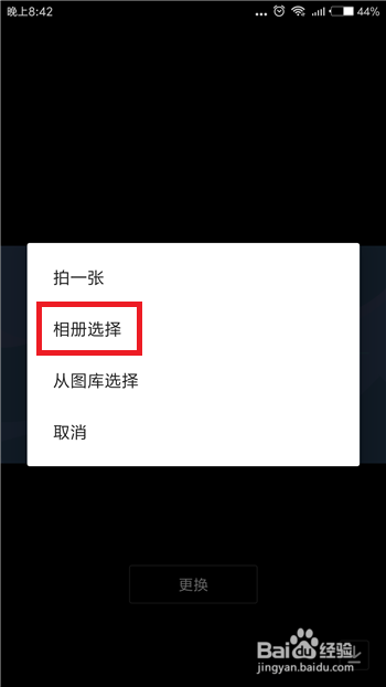 点击后系统会让我们选择一张布景图片,这里小编以相册中的为例,点击【相册选择】。