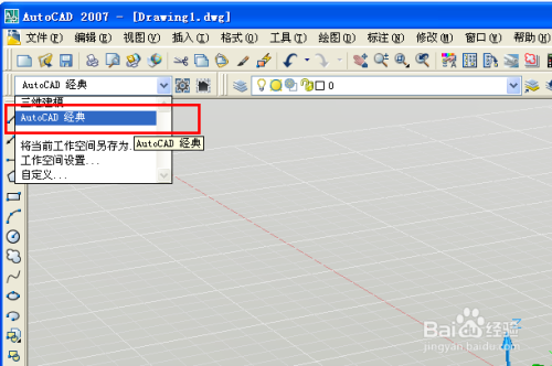 首先,我们启动Auto CAD软件后,我们进入软件的选择界面,第一步将如下图所示的选项框中的选项更改为“AutoCAD经典视图”。