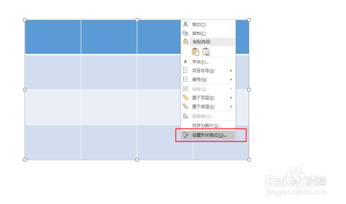 调整表格的宽度与长度,将其与图片完全对齐;然后选择表格,右键鼠标,执行“设置外形格局”号令,调出设置外形格局窗口。
