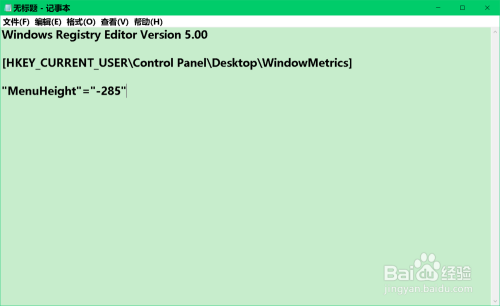 按照上述建造【恢复菜单栏高度.reg】注册表文件的方式,建造一个【恢复字体扩年夜百分比值.reg】注册表文件添加到注册表中。