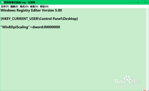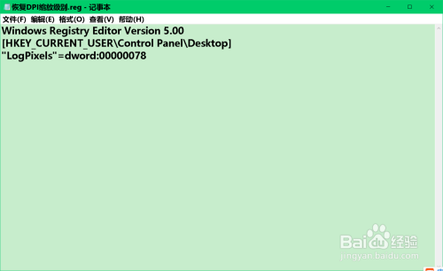 按照上述建造【恢复菜单栏高度.reg】注册表文件的方式,建造一个【恢复DPI缩放级别.reg】注册表文件添加到注册表中。